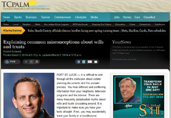 As much as we try to simplify the process for you, it can be difficult to sort through all the confusion about estate planning documents and the probate process. In an article posted on TCPalm.com, Florida Trust Attorney Robert D. Schwartz provides an insightful explanation of common misconceptions about wills and trusts. According to Schwartz,…